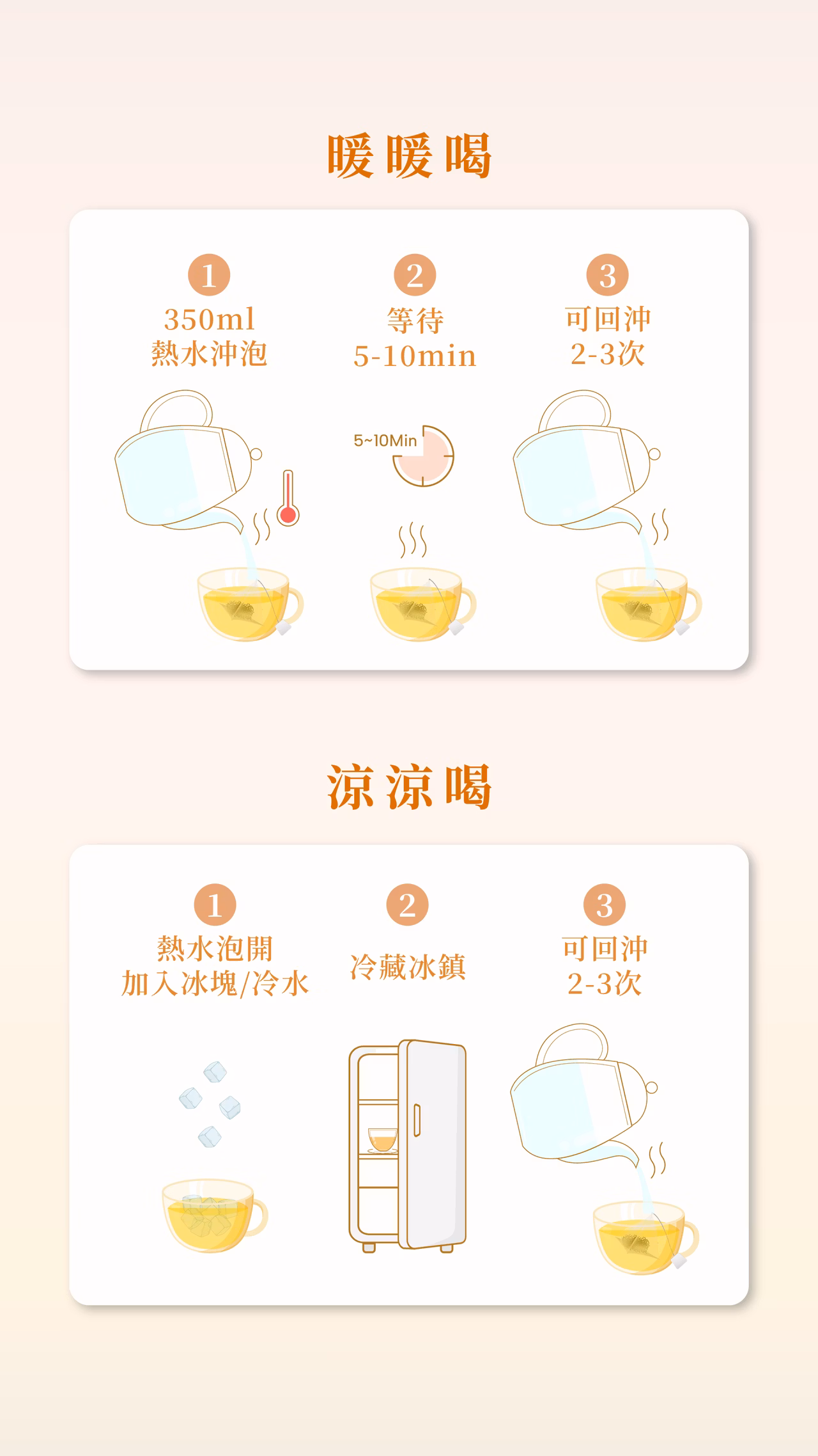 專為現代忙碌生活精心研發的日常養生茶飲,嚴選多款高品質漢方食材組成,全系列共推出補充「元氣、明亮、退火、舒心」四款功效,可依不同需求搭配飲用,無論是作為日常飲品、上班提神、飯後解膩都非常適合,入口溫潤,每日喝茶也能安心養生。