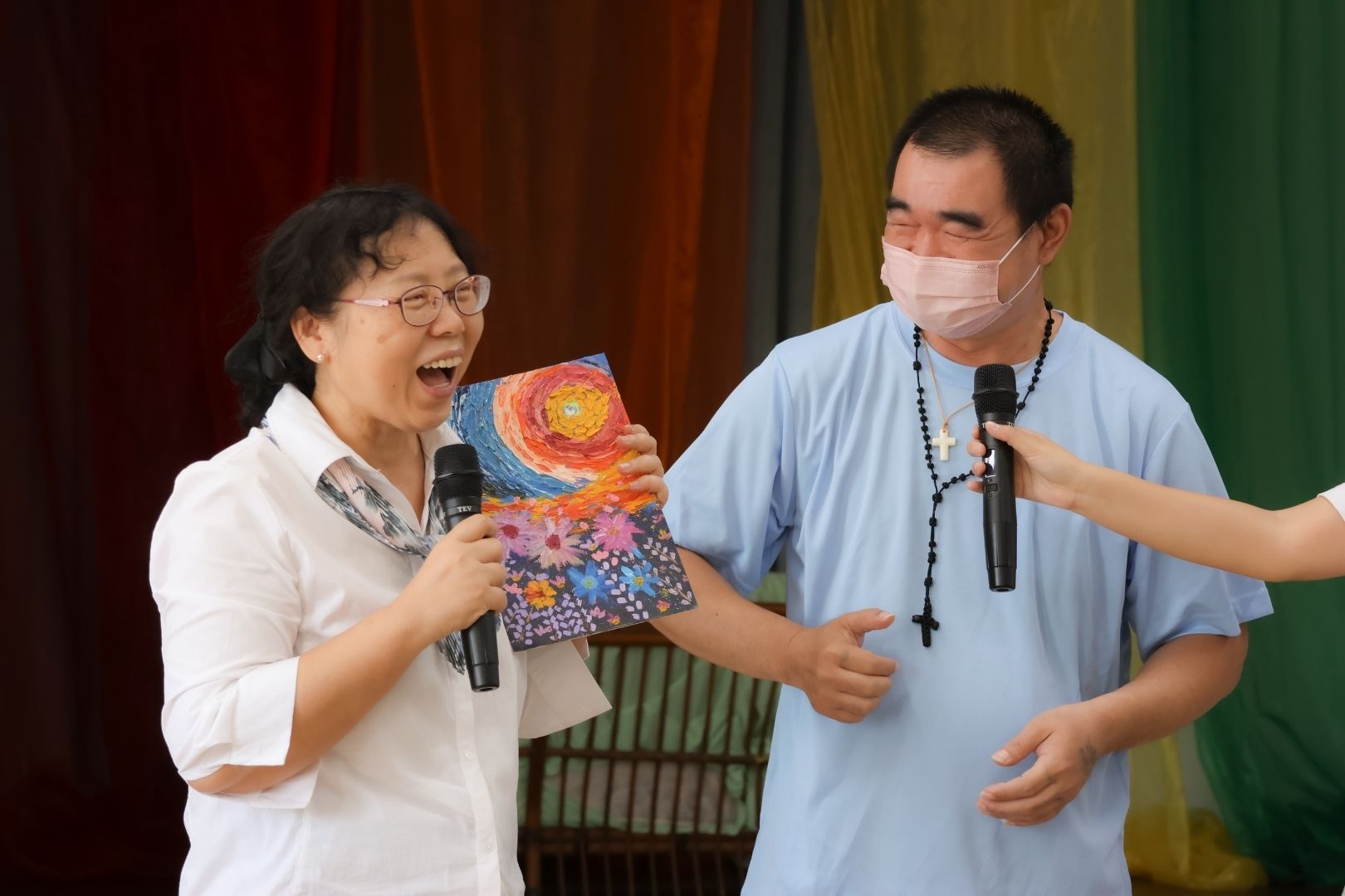 阿全以畫筆描繪一天的日常,從白日的湛藍天空、日落的橘紅晚霞到夜幕的黑夜,大地綻放滿滿碎花,是他在德蘭多年生活中所開出的「生命的花朵」,象徵夢想,太陽外圈使用多層次紅色,是想展現對生活的多樣期盼,也希望將正面歡樂的態度傳遞給更多人。